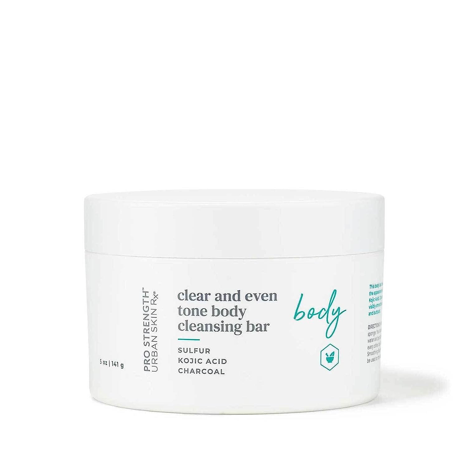 The Clear and Even Tone Body Cleansing Barcontains a powerful blend of ingredients that improve the appearance of uneven skin tone and reduce the visibility of breakouts. Formulated with Kojic Acid, Sulfur, Charcoal, and Salicylic Acid, this body bar delivers powerful exfoliation to reveal smoother and healthier-looking skin. Especially great for shoulders, chest, back and buttocks. 5 oz Anyone who struggles with body skin concerns and is looking to improve the appearance of dark marks, blemishes, rough skin texture, scarring or aging skin.